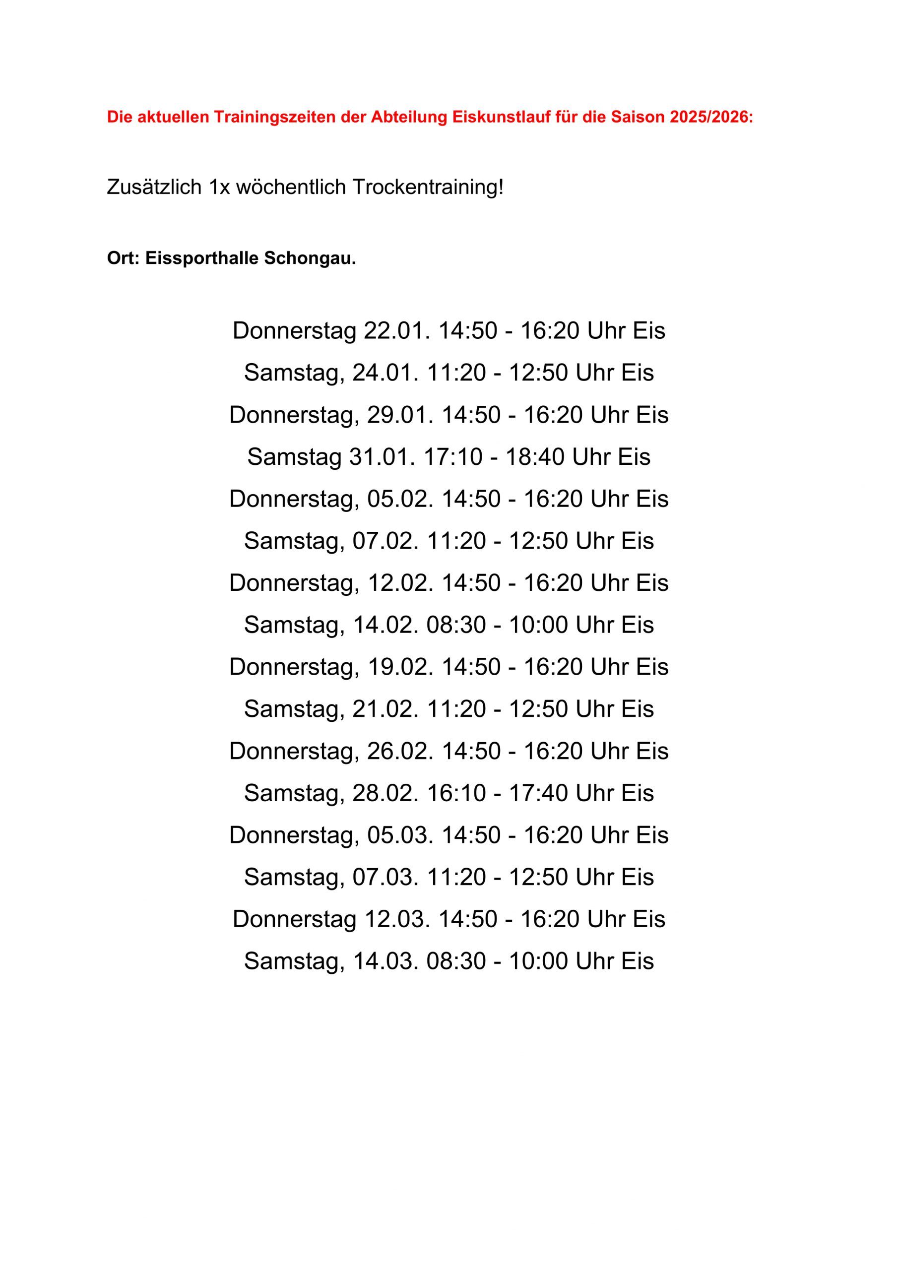 Hier die aktuellen Trainingszeiten: